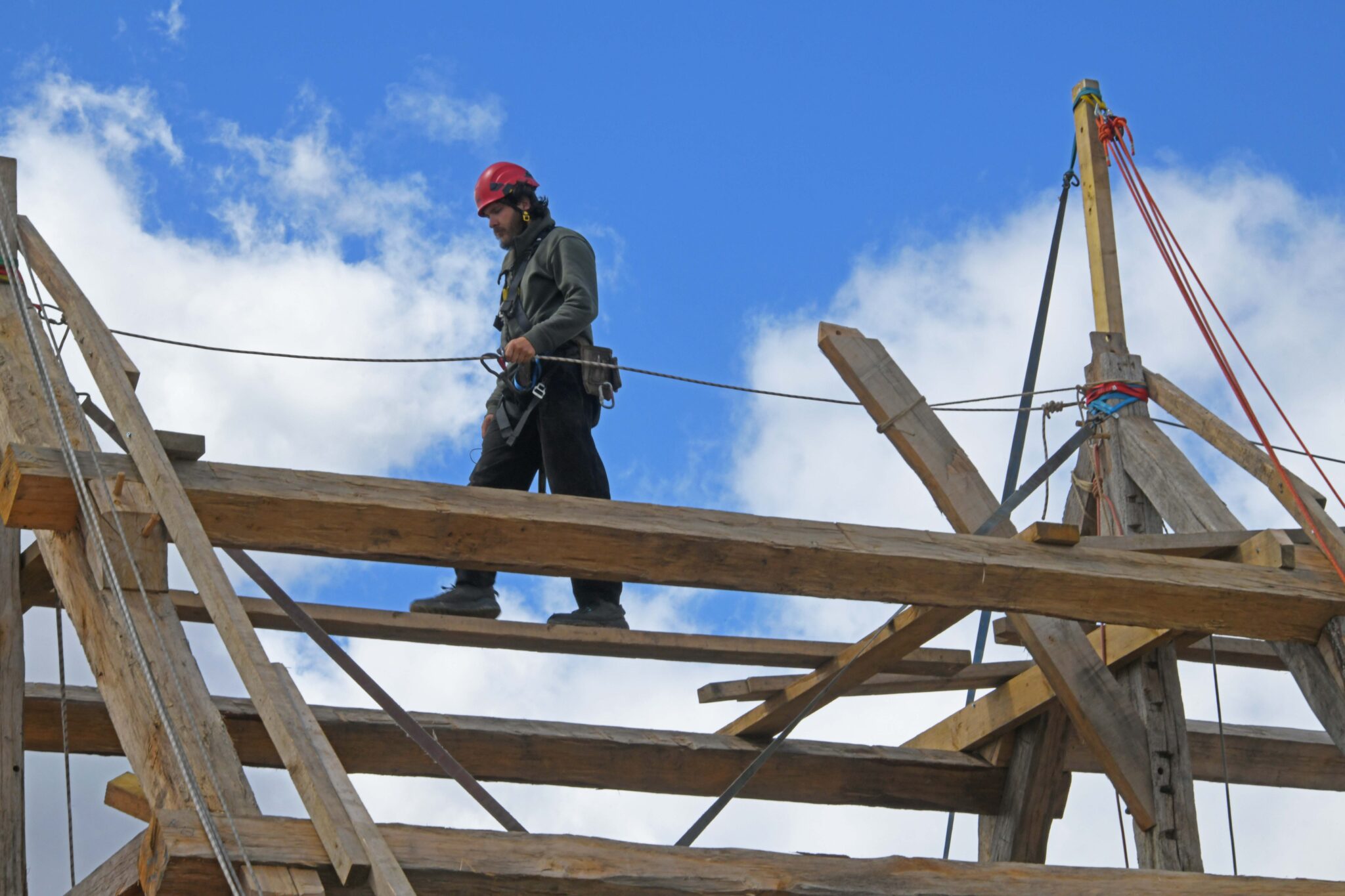 Le CAP obtenu, je poursuis par un BP Charpente et travaille dans des entreprises exigeantes sur des chantiers variés et techniques pendant plusieurs années. À l’occasion, je voyage en Norvège, en Angleterre et en Estonie pour me frotter à d’autres manières de faire.