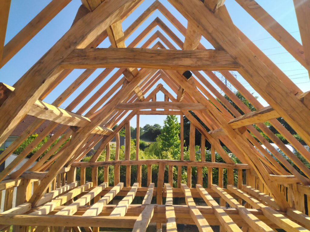 On entend par là un système qui repose sur des assemblages bois utilisant le métal avec parcimonie. Elle existe sous de nombreuses formes mobilisant une large variété d’assemblages. Ferme armoricaine, latine, ciseaux, treillis… pour les toitures. Colombage ou pan de bois pour les murs.
